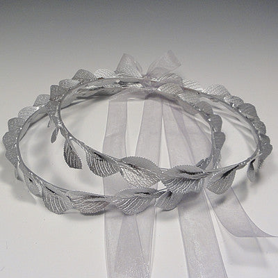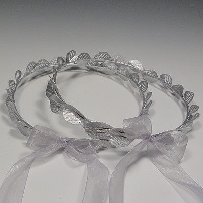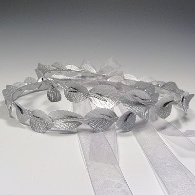 The Milos crowns, you're currently viewing the silver set, are one of my favorite sets. It's a unique set that also looks oh-so-familiar. A classic repeated pattern of shaped leaves, accented with smaller leaves rings the crown base **3/1/17--I've had to change the smaller accent leaf. The Gold Milos listing has updated photos showing the new interior leaf. This silver listing has not yet been updated with new pictures. I'm working on it.!)
